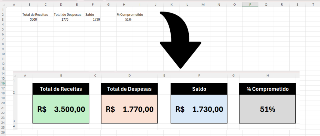Nesta Parte 2, você vai aprender a criar os indicadores principais (KPIs) do seu controle financeiro, utilizando funções essenciais como SOMASES, além de calcular automaticamente: